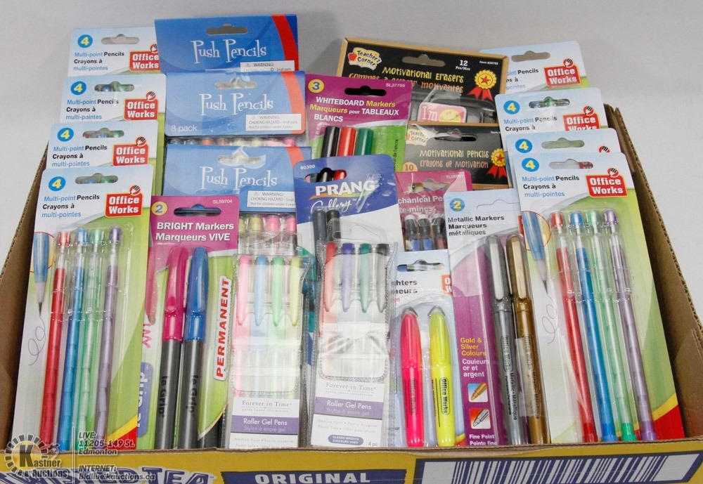 FLAT OF NEW ASSORTED PENS AND PENCILS