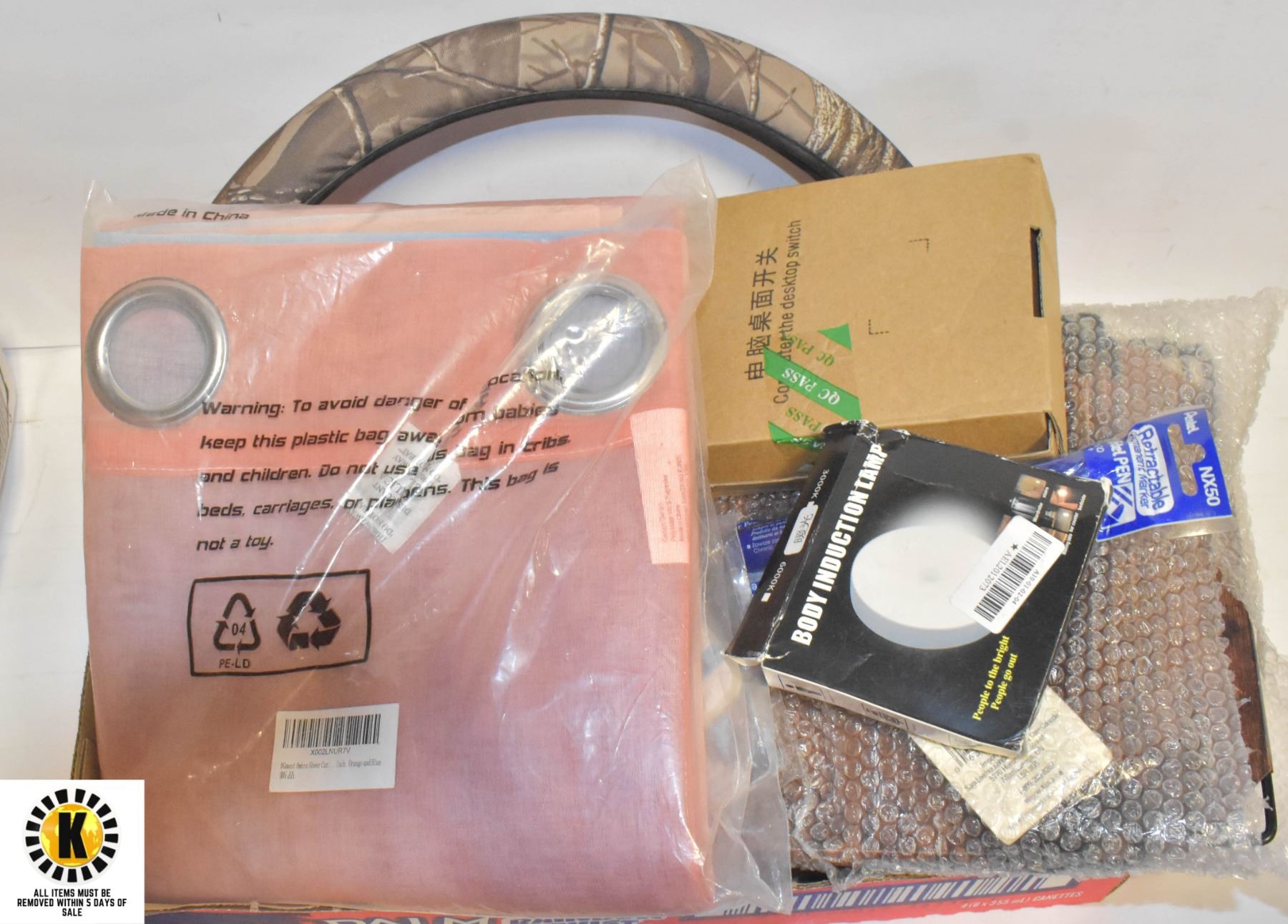 FLAT OF NEW ITEMS INCL NEW CUTAINS
