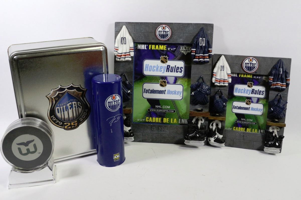 FLAT OF OILERS COLLECTIBLES INCLUDING FRAMES