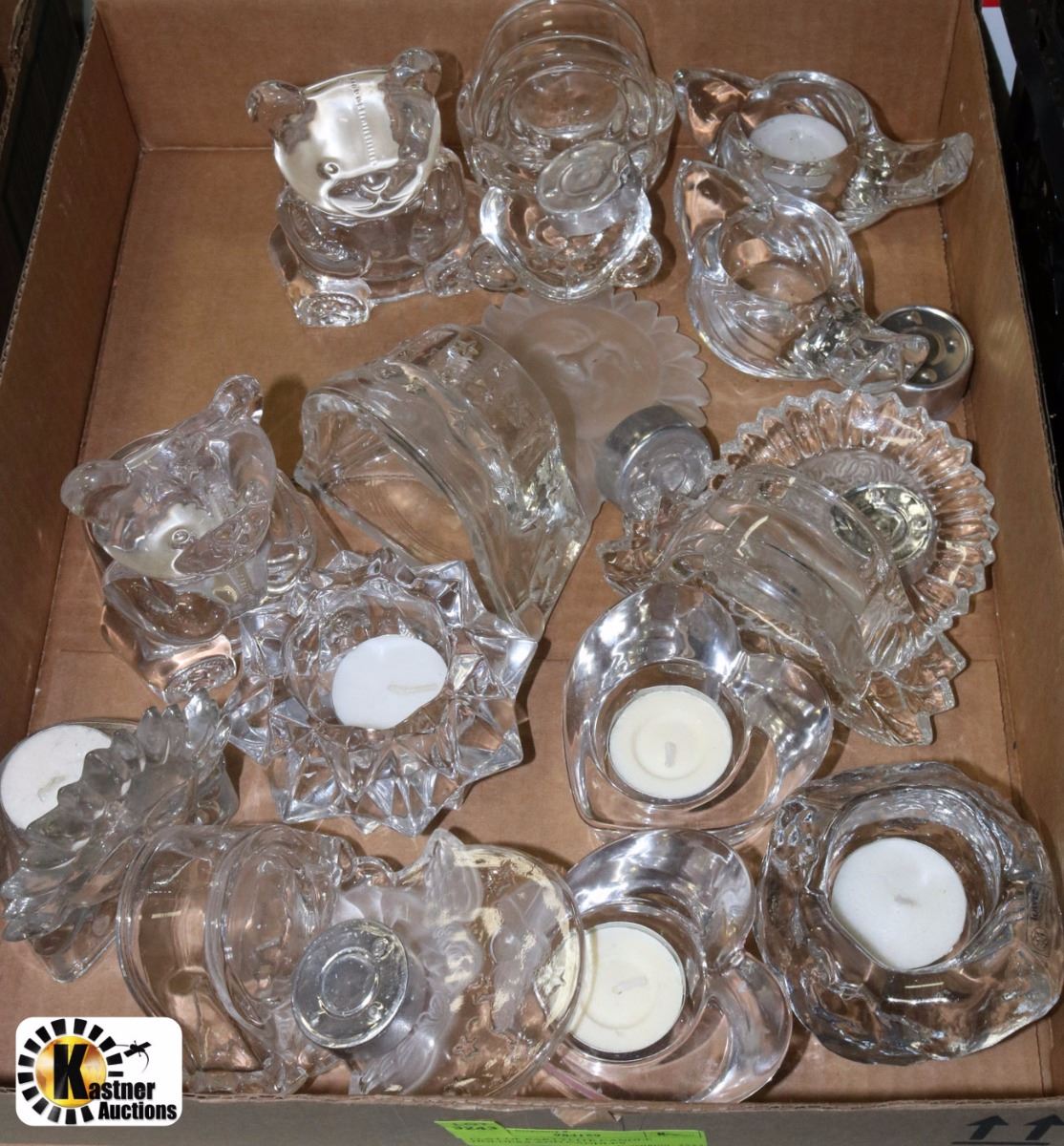FLAT OF PARTYLITE CANDLE HOLDERS AND CANDLES