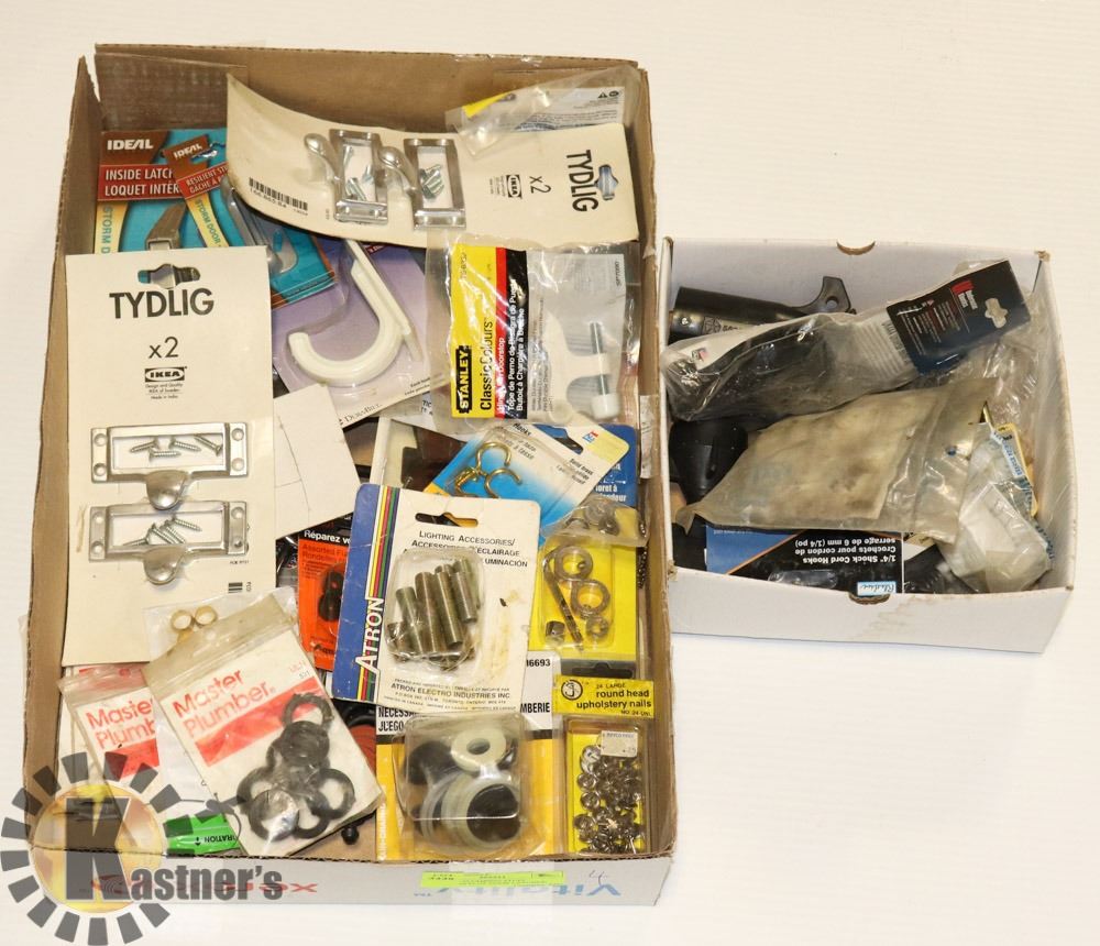 FLAT OF PLUMBING STUFF WASHERS PLUS DOOR LATCHES,