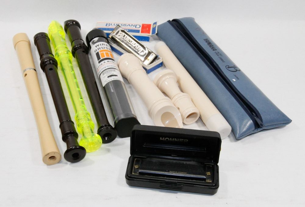 BAROQUE FINGERING #YRA-28B11 W/CASE, AULOS, YAMAHA, HANDLE, GILL, COMES WITH TWO HARMONICAS, ONE FROM GERMANY. INSTRUMENTS