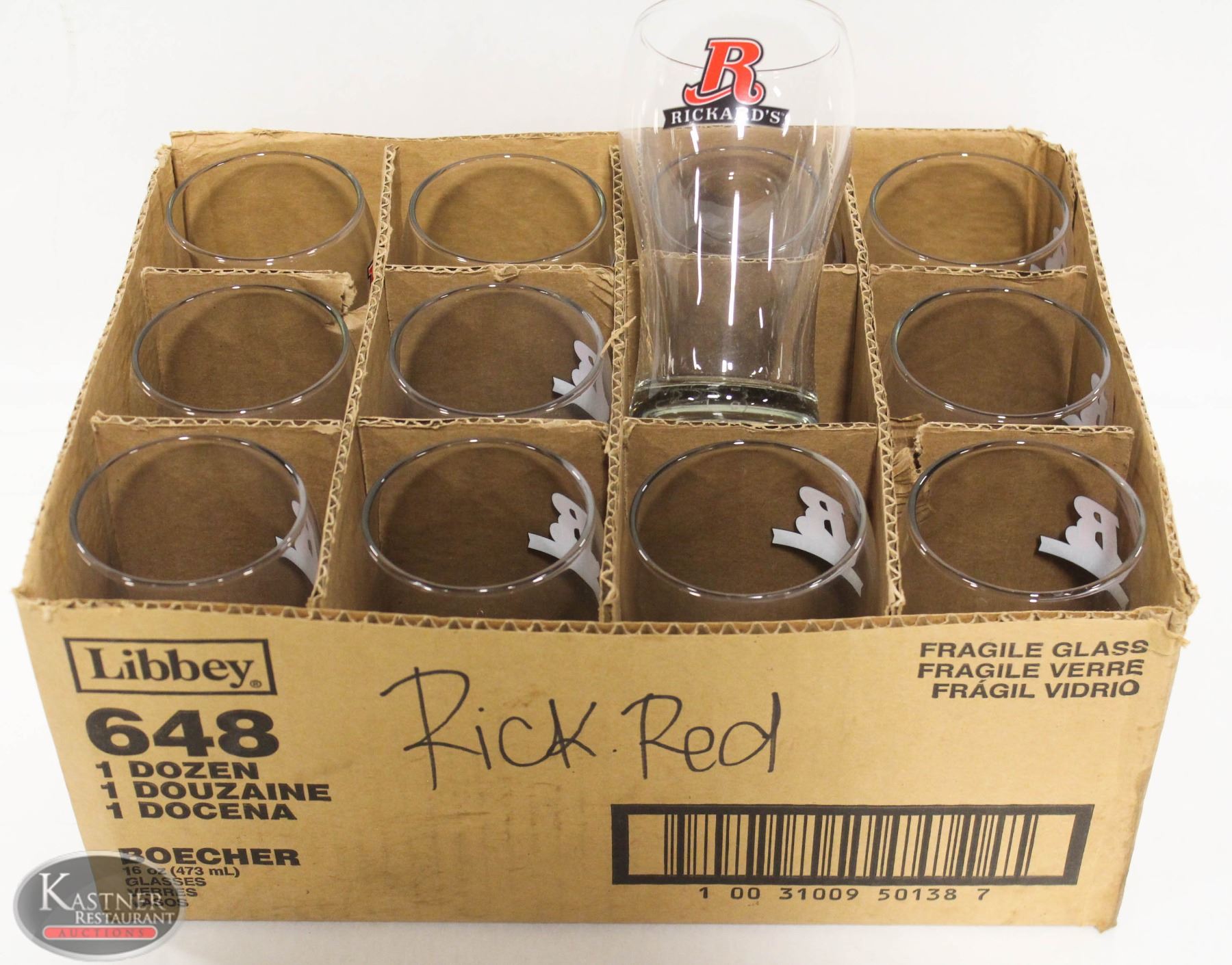 FLAT OF RICKARDS BRANDED LOGO BEER GLASSES