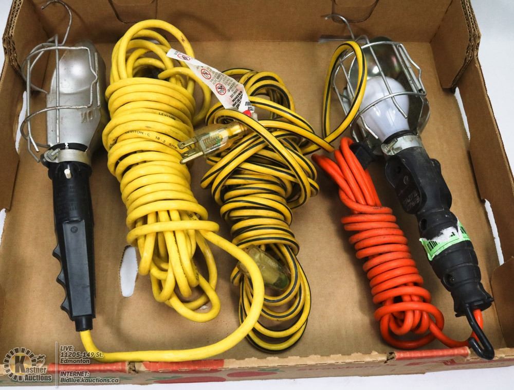 FLAT OF SHOP LIGHTS AND EXTENSION CORDS