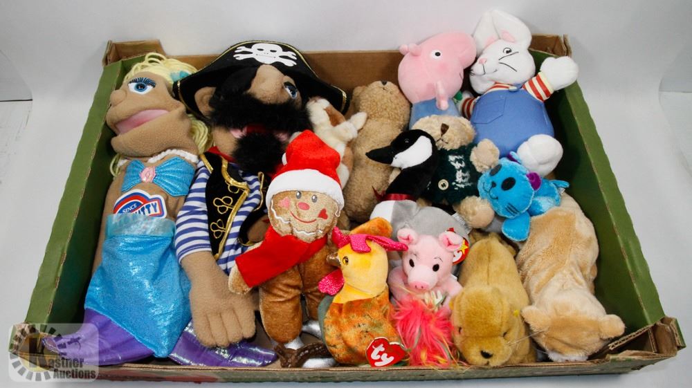 FLAT OF STUFFIES AND PUPPETS.