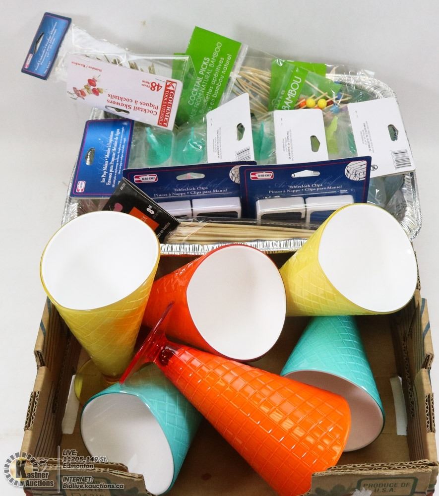 PARFAIT/SUNDAY DISHES, POPSICLE MAKERS, 2 DIFFERENT KINDS OF SKEWERS, FOOD UMBRELLA, COCKTAIL PICKS, TABLECLOTH CLAMPS,