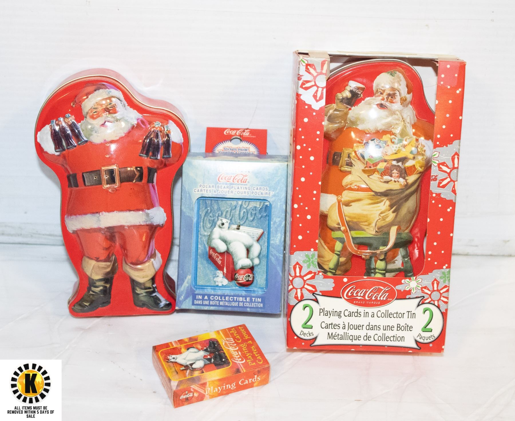 FLAT OF UNOPENED COCA COLA PLAYING CARDS IN TINS