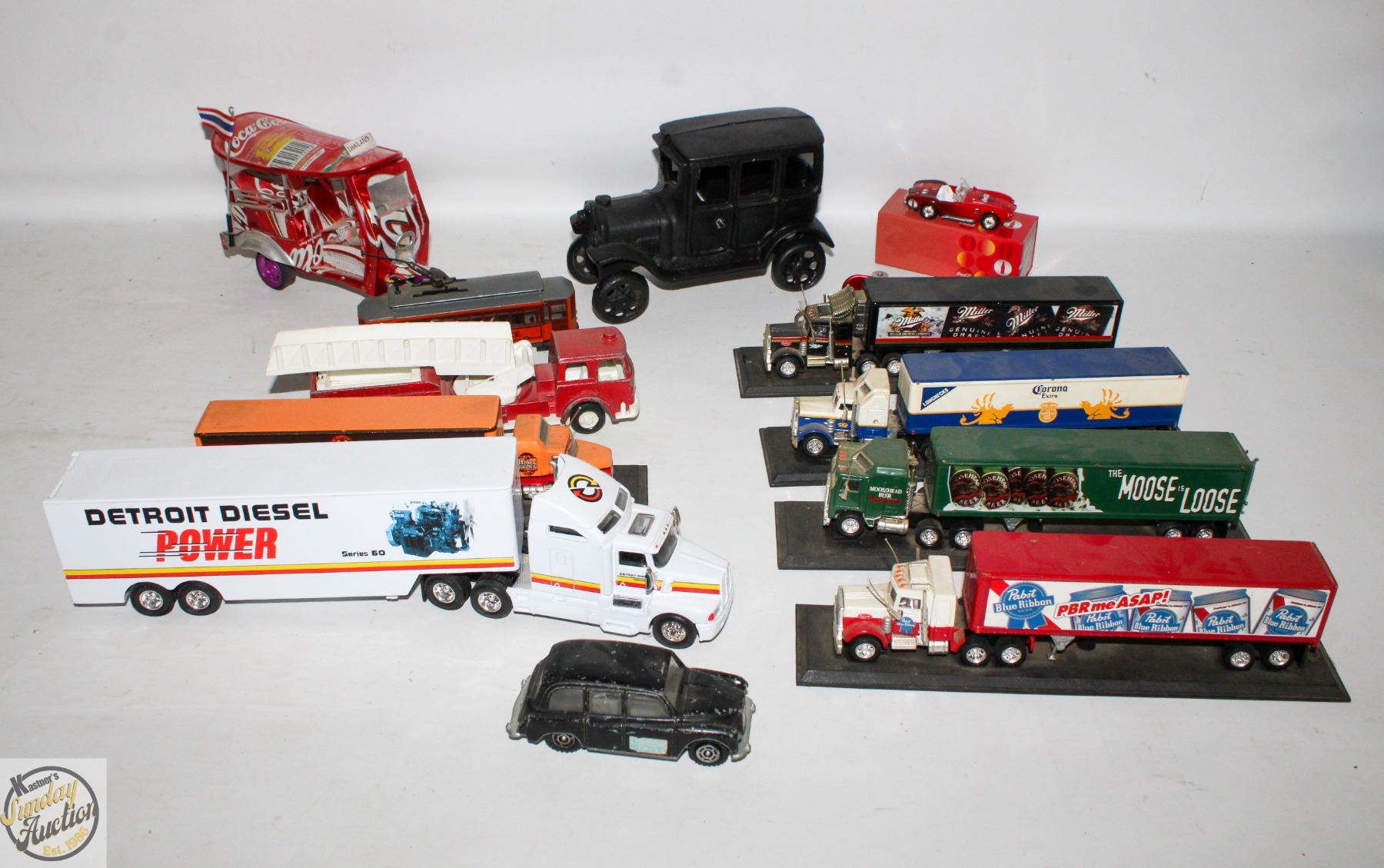FLAT OF VARIOUS MODEL SEMI TRUCKS, CARS & COKE CAN