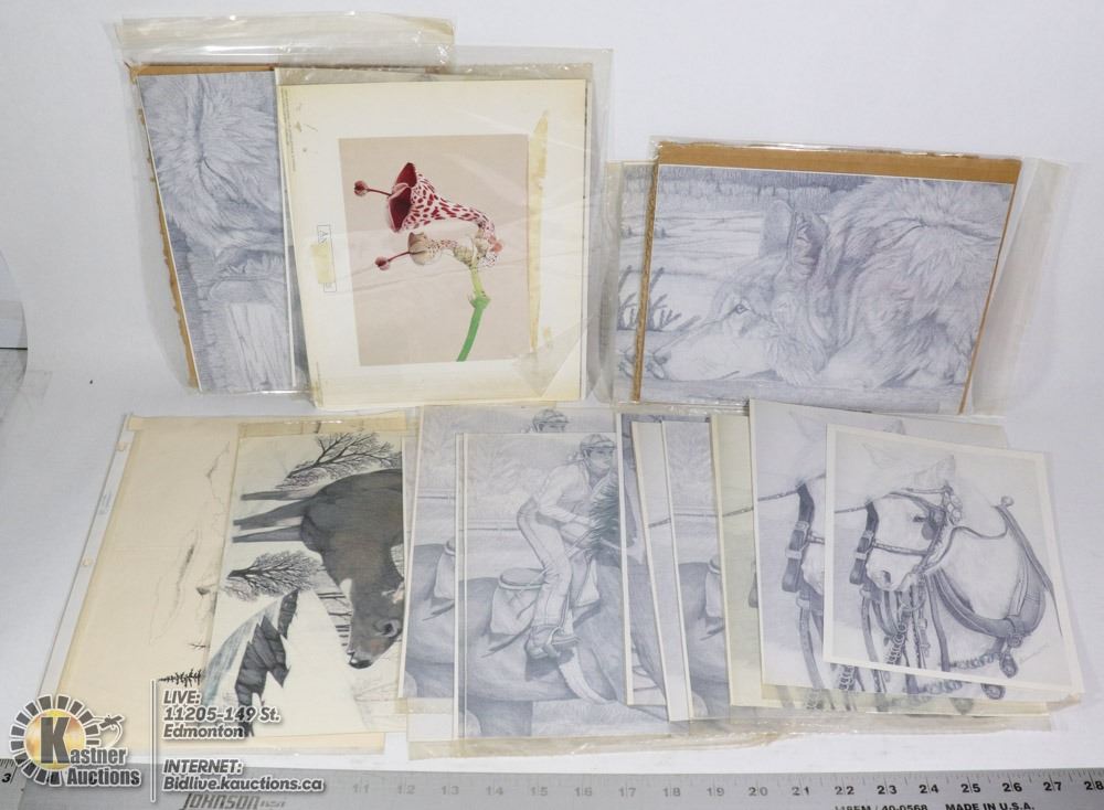 FLAT OF VARIOUS SKETCHES, PRINTS & ARTWORK