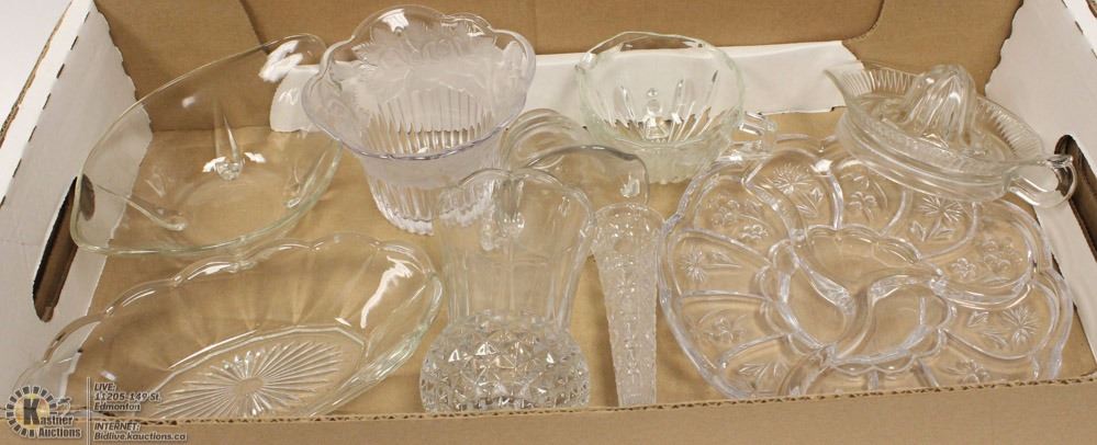 VASES, PLATTER, CREAMER, SUGAR, BOWLS AND MORE