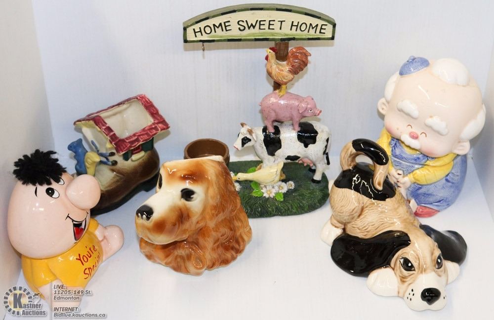 OLD MAN JAR, VINTAGE DOG PLANTER BY COPLAY, AND MORE