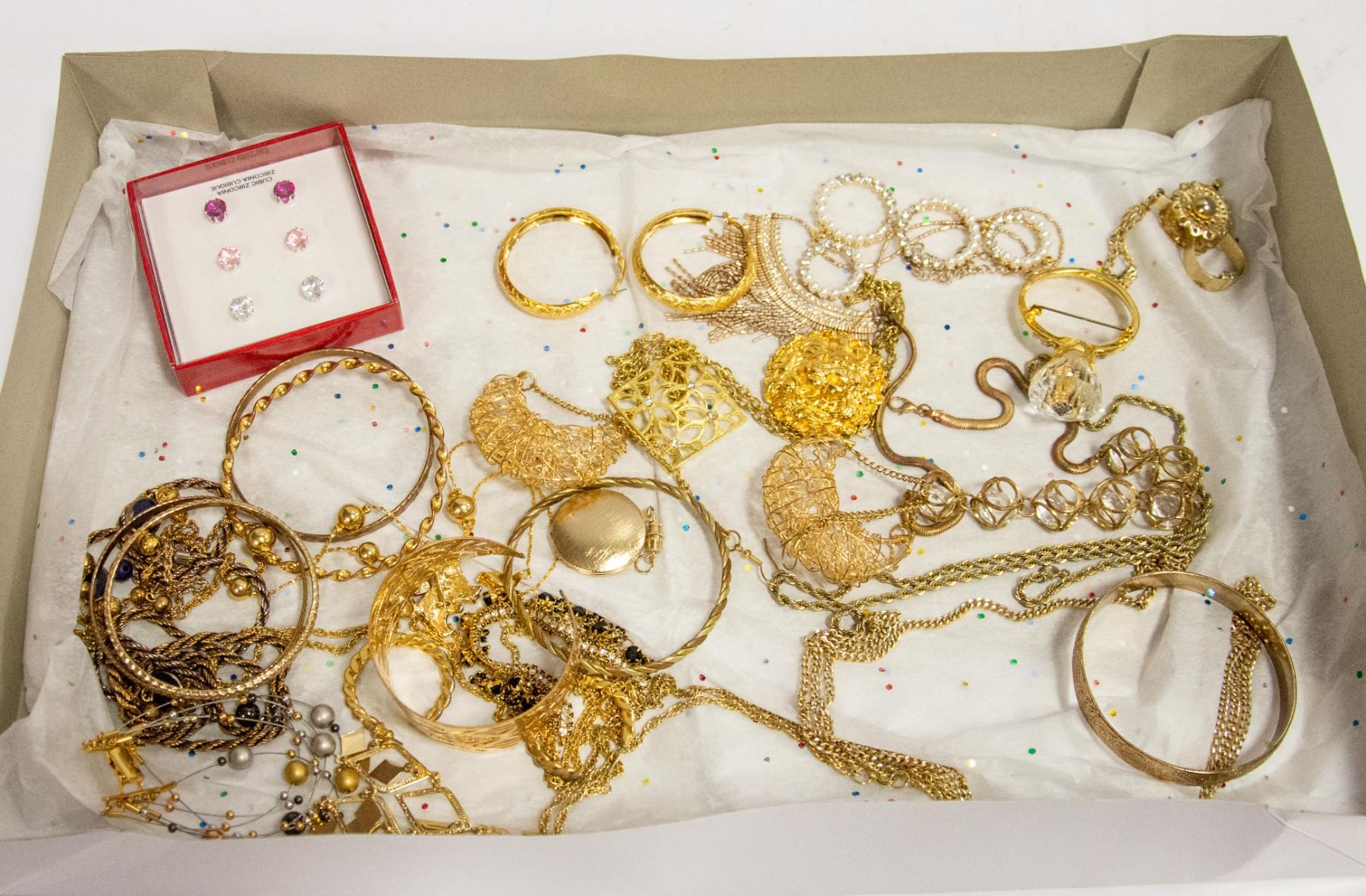 FLAT OF VINTAGE GOLD TONE JEWELRY