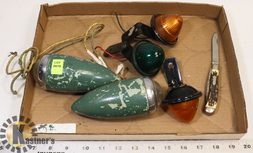 FLAT OF VINTAGE LIGHTS SOLD WITH VINTAGE KNIFE