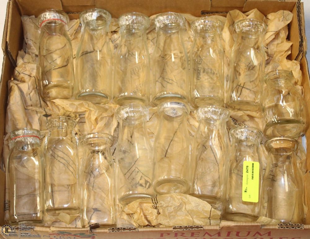 FLAT OF VINTAGE MINIATURE MILK BOTTLES