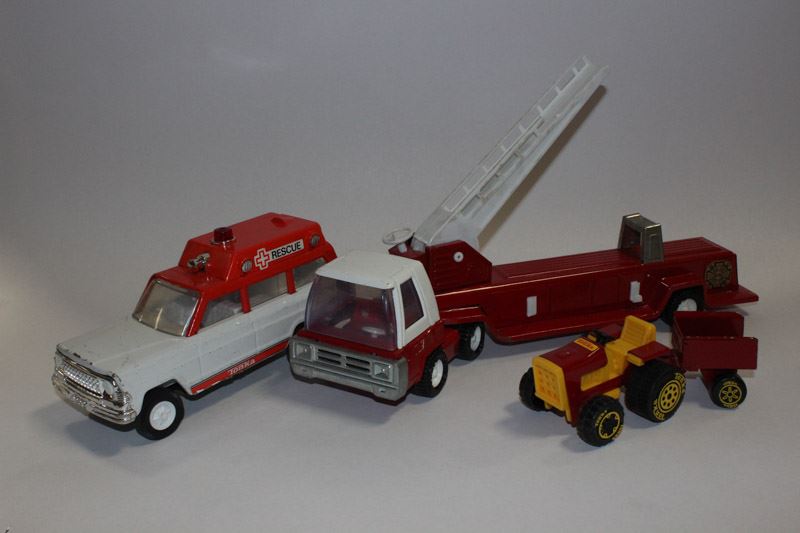 FLAT OF VINTAGE TONKA & BUDDY L RESCUE TOYS