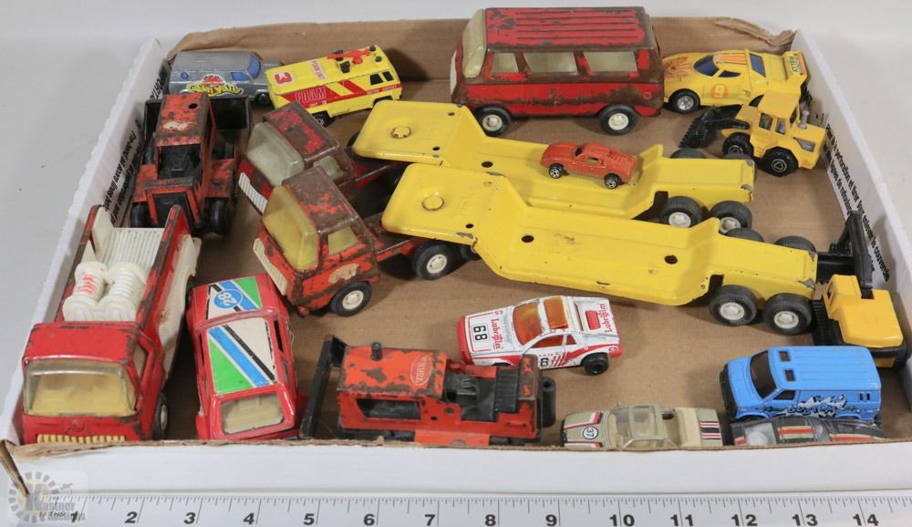 FLAT OF VINTAGE TONKA TRUCKERS AND DIE CAST CARS
