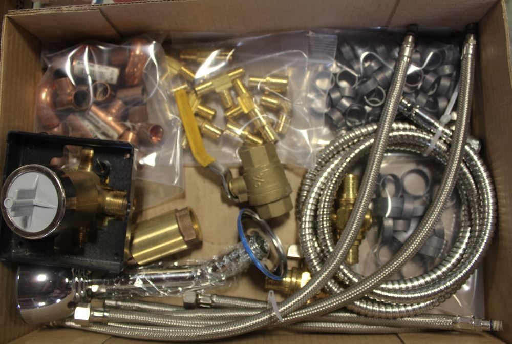 INCLUDES VALVES, BRASS TUBE FITTINGS, COPPER PIPE FITTINGS, PEX COMPRESSION RINGS, BRAIDED HOSES
