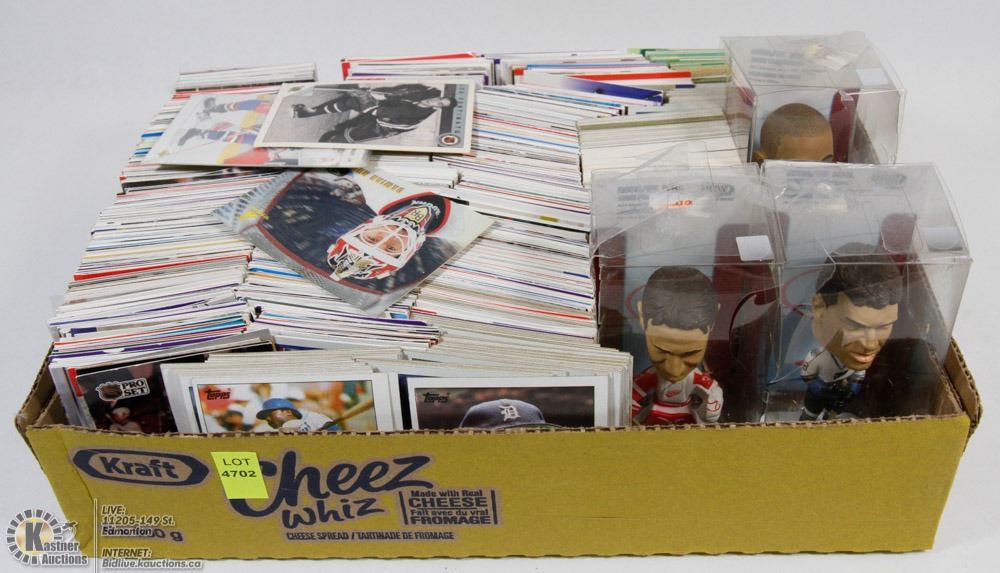 PLAYMAKER SPORTS MINI BOBBLEHEADS WITH A LOT OF VARIETY OF SPORTS CARDS HOCKEY ETC 500 PLUS CARDS. COLLECTIBLES