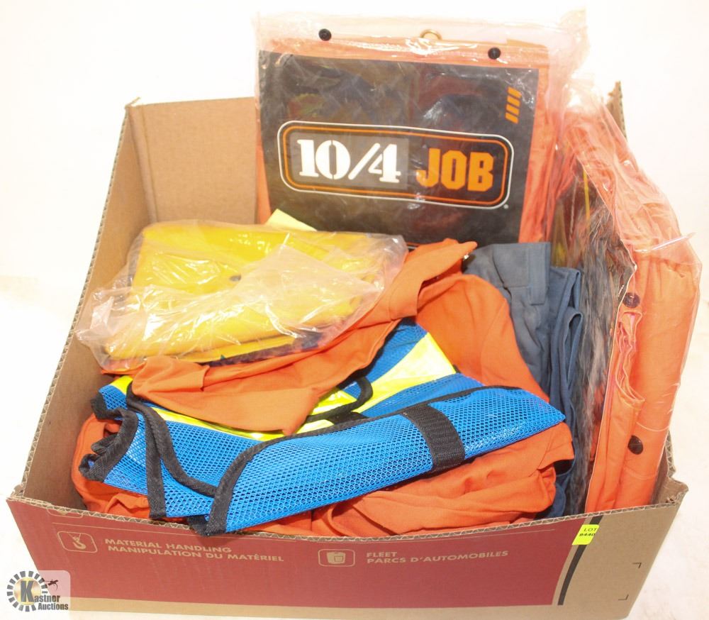 XL + MEDIUM RAINSUITS, OVERALLS(54 REGULAR), PANTS(30-36), SAFETY VEST