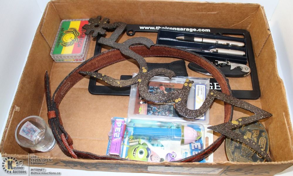 BUCKLE, POCKET KNIFE, NEW COLLECTIBLE PEZ, LEATHER BELT & MORE