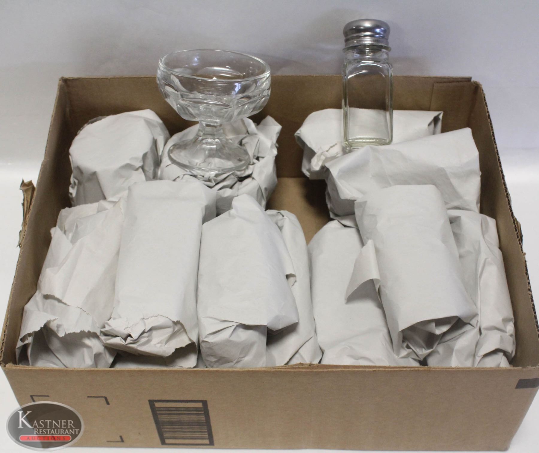 FLAT W/ SALT & PEPPER GLASS SHAKERS, & DESSERT