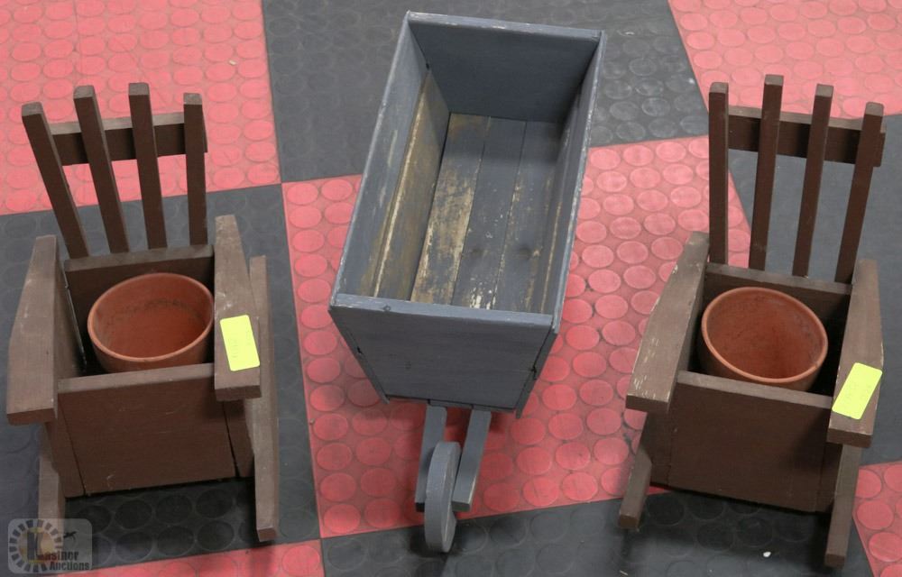 FLAT WITH 2 CHAIR PLANTERS AND WHEEL BARREL
