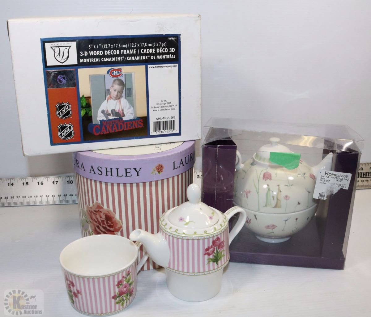 FLAT WITH 2 TEAPOTS AND CANADIENS PICTURE FRAME