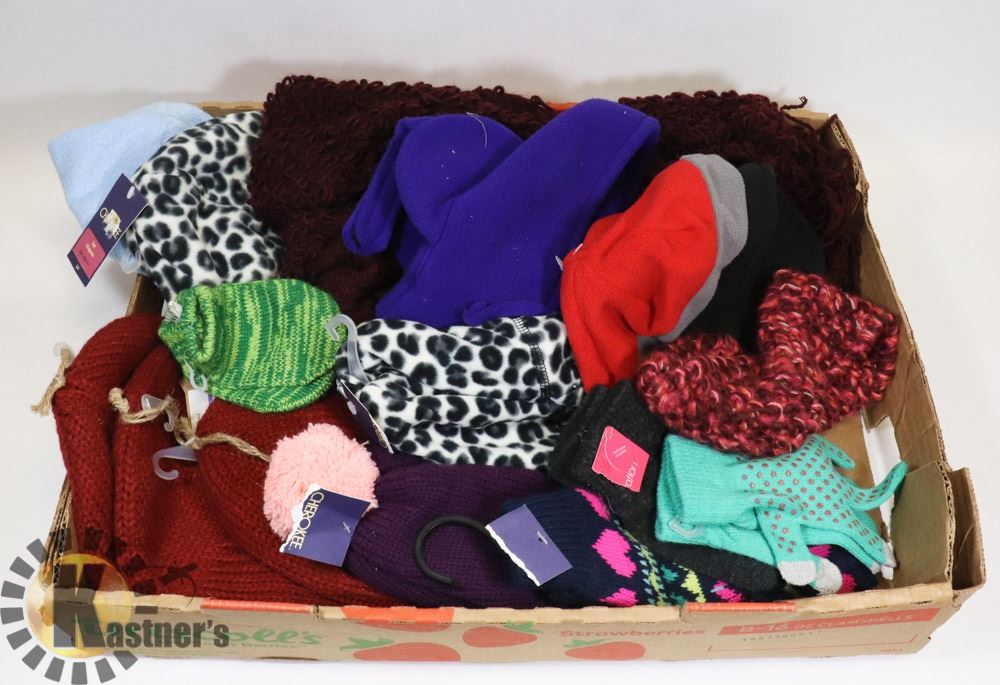 FLAT WITH ASSORTED GLOVES, SCARVES AND HATS