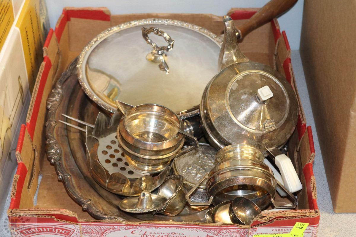FLAT WITH ASSORTED SILVER PLATED & PEWTER ITEMS