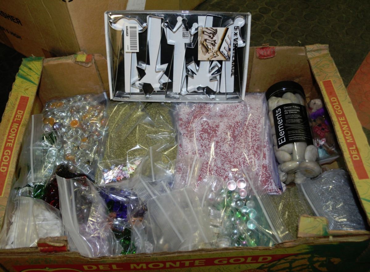 FLAT WITH DECORATIVE SAND,BEADS,CRYSTALS & ROCKS