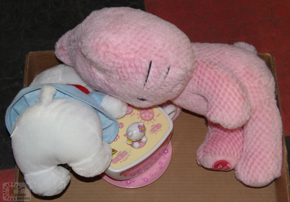 PLUSH TOY AND A HELLO KITTY ALARM CLOCK