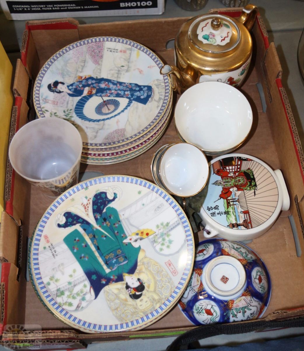 FLAT WITH JAPANESE AND CHINESE COLLECTOR TEA POT