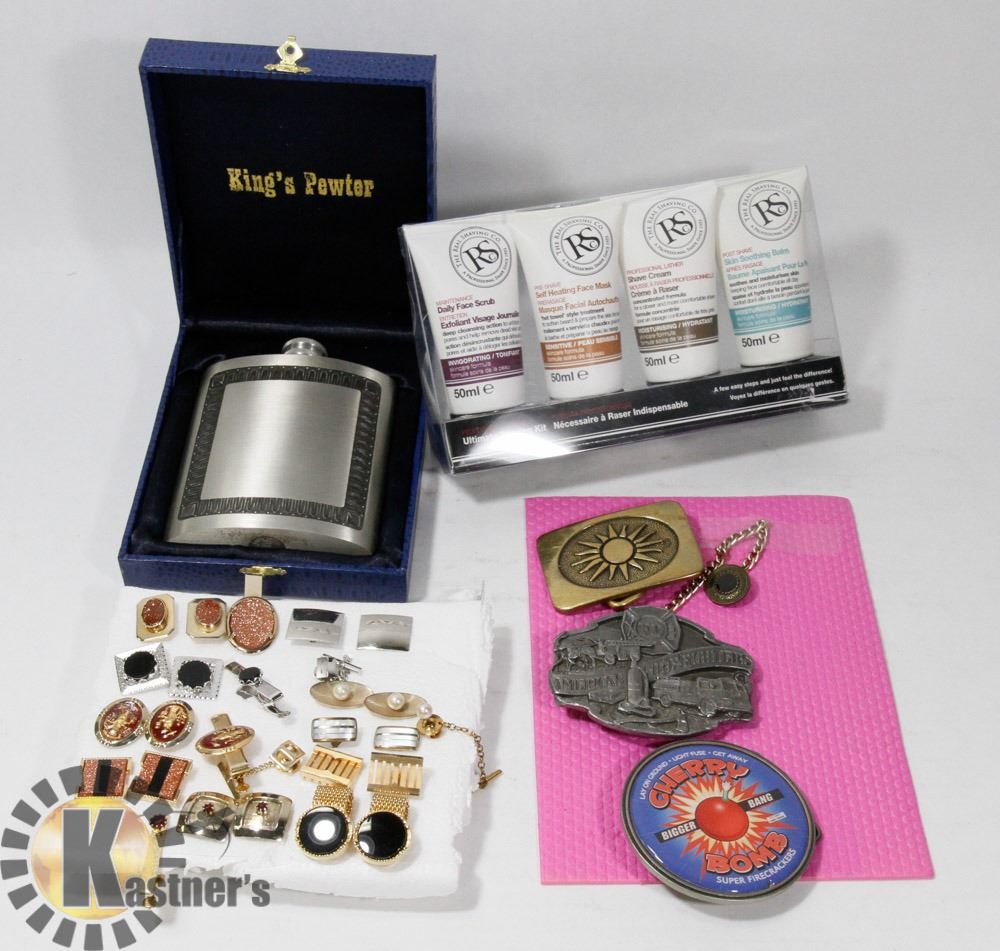 W/3 BELT BUCKLES AMERICA FIRE FIGHTERS 1 SOLID BRASS, RED SHAVING CO. 4 PC SET (NEW) & 10 CUFFLINKS & MORE. MISC