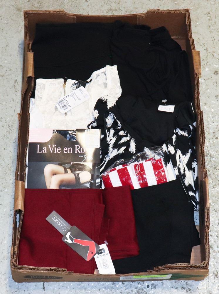 COLE, FOREVER 21, SUZYSHIER BRANDS - 1 SKIRT, 1 PANTS, 2 TOPS, 1 NYLONS, 3 LEGGINGS - SIZES M & L - CLOTHING
