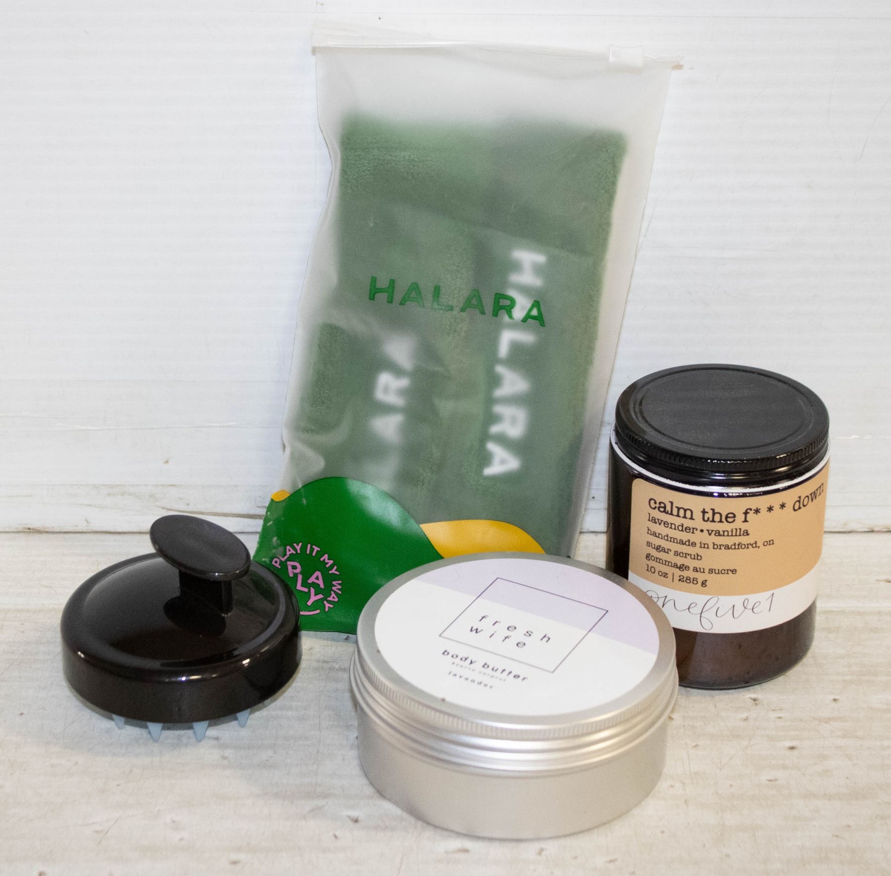 NEW LAVENDER VANILLA SUGAR SCRUB, 2 NEW GREEN SWEAT BANDS + MANUAL SCALP MASSAGER **ALL ITEMS MUST BE REMOVED BY 5PM SATURDAY, FEBRUARY 10TH 2024. ALL REMAINING ITEMS WILL BE SUBJECT TO A $6.00 PER DAY STORAGE CHARGE. ANY ITEMS REMAINING AFTER MONDAY, FEBRUARY 26TH, 2023 WILL BE CONSIDERED FORFEITED. NO REFUNDS WILL BE ISSUED FOR FORFEITED ITEMS. TO SCHEDULE A PICK UP APPOINTMENT CLICK HERE
