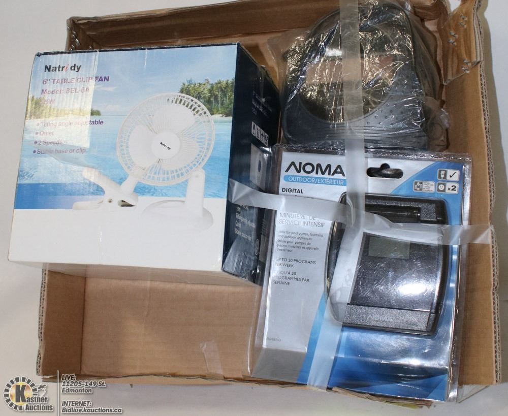 FLAT WITH OUTDOOR TIMER, CLIP FAN & CLOCK RADIO