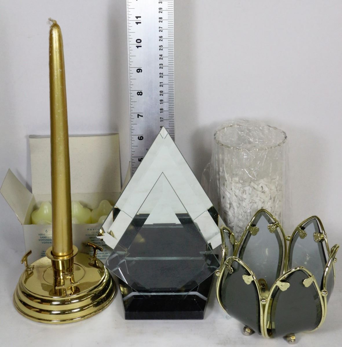 WATER LILY VOTIVE HOLDER,BRASS AND GLASS CANDLE HOLDER AND MORE