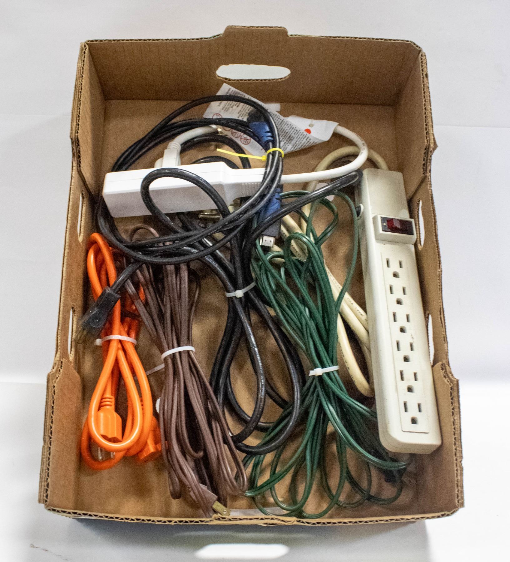 HDMI CORD INCL. 6-TAP SURGE PROTECTED POWER BAR, 3-TAP POWER BAR, 2 OUTDOOR CORDS, LONG INDOOR CORDS, ETC. **ALL ITEMS MUST BE REMOVED BY 5PM SATURDAY, JUNE 15TH 2024. ALL REMAINING ITEMS WILL BE SUBJECT TO A $6.00 PER DAY STORAGE CHARGE. ANY ITEMS REMAINING AFTER MONDAY, JULY 1ST 2024 WILL BE CONSIDERED FORFEITED. NO REFUNDS WILL BE ISSUED FOR FORFEITED ITEMS. TO SCHEDULE A PICK UP APPOINTMENT CLICK HERE