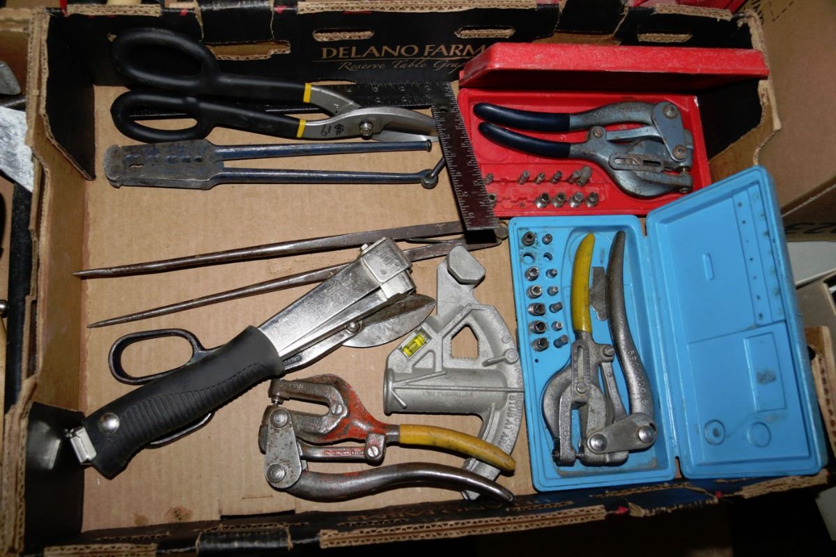 FLAT WITH RIVOTERS,SNIPS,TUBE BENDERS AND MORE