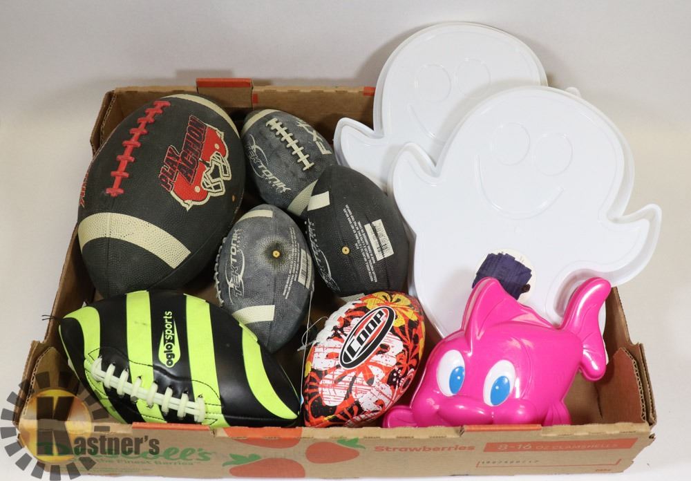 FLAT WITH SAND TOYS AND FOOTBALLS