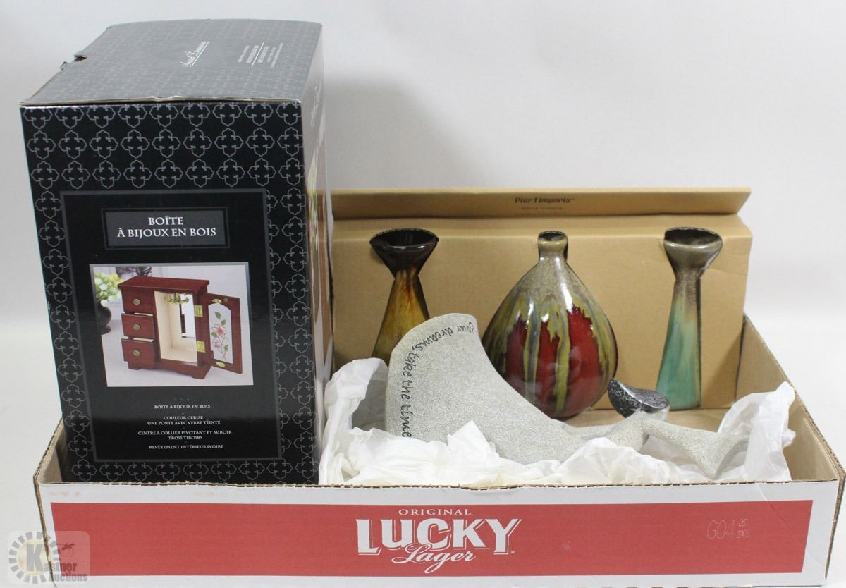 ANGEL ORNAMENT AND A 3PCGLASS VASE SET FROM PIER1