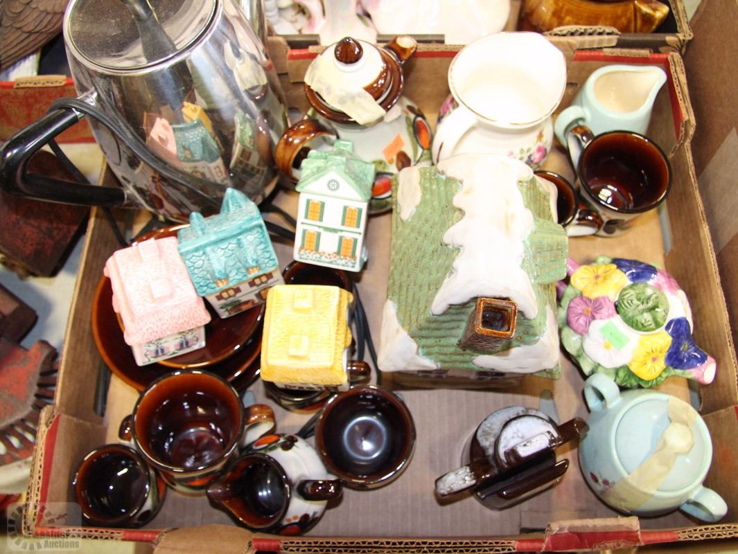 FLAT WITH VINTAGE ELECTRIC KETTLE, TEA POT, ETC