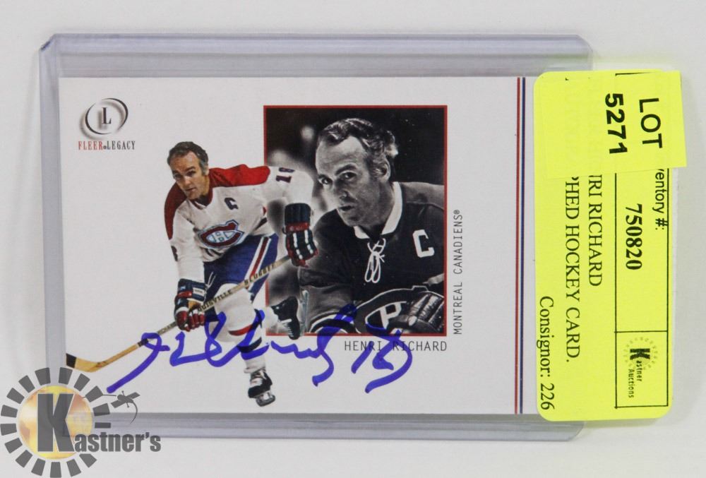FLEER HENRI RICHARD AUTOGRAPHED HOCKEY CARD.