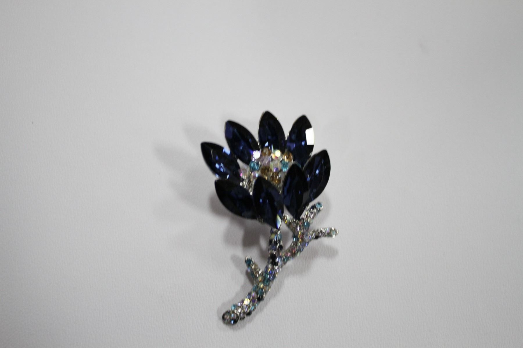 FLOWER RHINESTONE BROOCH WITH MARQUIS CUT STONES