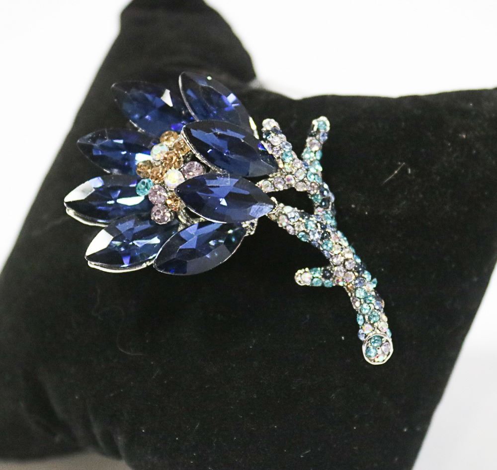 FLOWER RHINESTONE BROOCH WITH MARQUIS CUT STONES