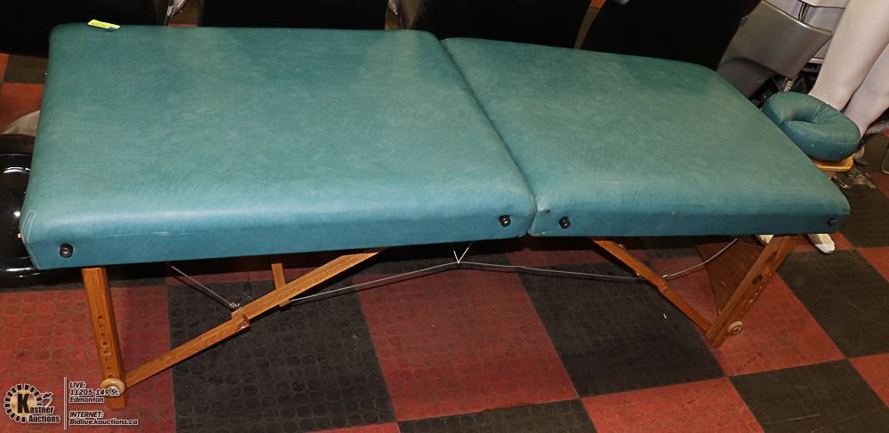 HEADREST - SOLID WOOD FOLD-OPEN LEG SYSTEM - ADJUSTABLE HEIGHT, EXCELLENT CONDITION (72"L X 28.5"W X ADJUSTABLE HEIGHTS) - GENERAL, HEALTH