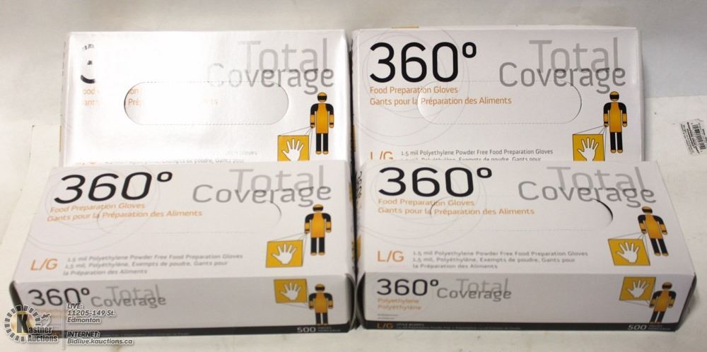2,000 NEW CFI A APPROVED GLOVES, 360 TOTAL COVERAGE, POLYETHYLENE, 1.5MIL THICKNESS, 500 GLOVES PER BOX , 4 BOXES PER CASE - SIZE LARGE