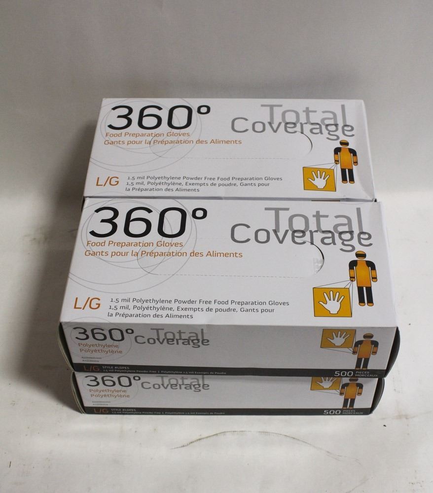 2,000 NEW CFI A APPROVED GLOVES, 360 TOTAL COVERAGE, POLYETHYLENE, 1.5MIL THICKNESS, 500 GLOVES PER BOX , 4 BOXES PER CASE - SIZE LARGE - AS THEY COME