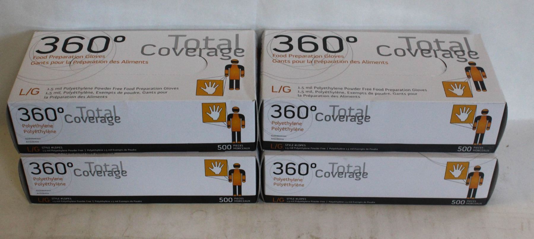 2,000 NEW CFI A APPROVED GLOVES, 360 TOTAL COVERAGE, POLYETHYLENE, 1.5MIL THICKNESS, 500 GLOVES PER BOX , 4 BOXES PER CASE - SIZE LARGE