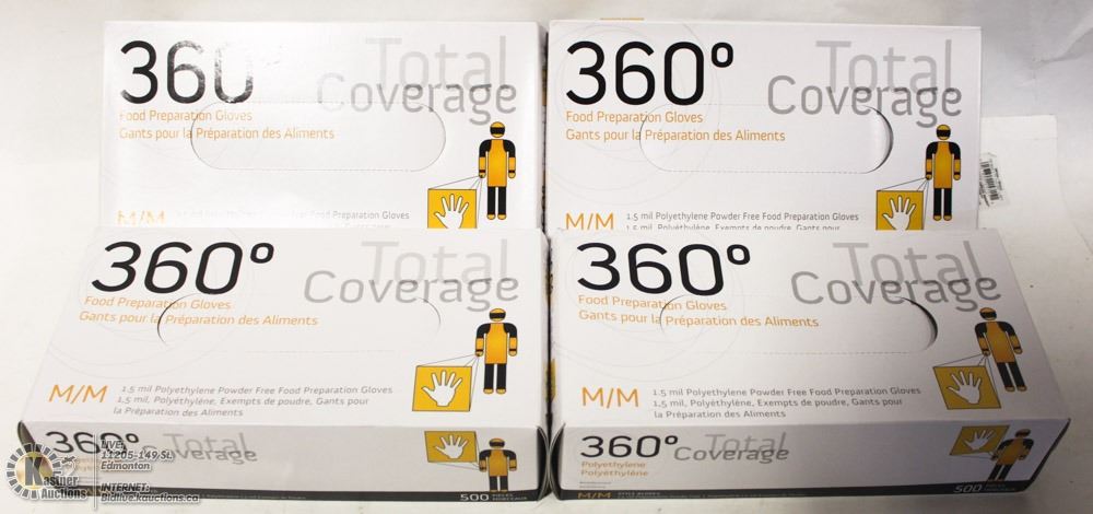 2,000 NEW CFIA APPROVED GLOVES, 360 TOTAL COVERAGE, POLYETHYLENE, 1.5MIL THICKNESS, 500 GLOVES PER BOX , 4 BOXES PER CASE - SIZE MEDIUM - AS THEY COME IN CATALOGUE ORDER